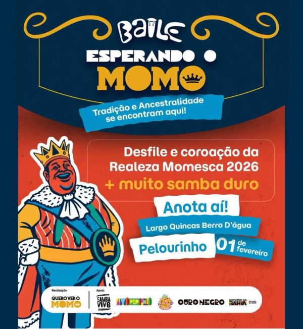 A Associação Cultural e Carnavalesca Quero Ver o Momo é uma entidade apoiada pelo Programa Ouro Negro, iniciativa do Governo da Bahia que fortalece a cultura popular e identitária do estado. Em 2026, o Ouro Negro tem investimento recorde na valorização de blocos afro, afoxés, grupos de samba, reggae e blocos de índio. Com esse apoio, a tradição e a ancestralidade são protagonistas no carnaval e nas festas populares da Bahia.