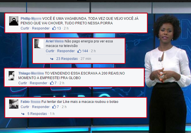 Movidos pelo mesmo objetivo, os grupos assolaram as atrizes Taís Araújo, Sheron Menezzes e Cris Vianna, valendo-se de semelhante léxico racista. Juliana Alves, outra atriz global, notifica que sofreu o violência igual, mas optou por enfrentá-la envolvendo-se em campanha educativa de combate ao racismo nos meios virtuais, idealizada pela ONG carioca Criola.