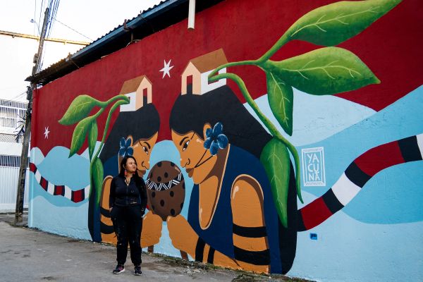 Para Yacunã Tuxá, artista visual e ativista originária do Povo Tuxá de Rodelas, no sertão baiano, foi especial. “O projeto me possibilitou  construir um diálogo ativo através da arte. É interessante se ver nessa dinâmica relacional, onde você ouve e é ouvido, ensina e é aprendiz. Enquanto pintava, ouvia histórias do cotidiano, algumas dores, muitas alegrias, mas em todas essas falas pude enxergar várias estratégias sutis para viver a vida com dignidade”, reflete.