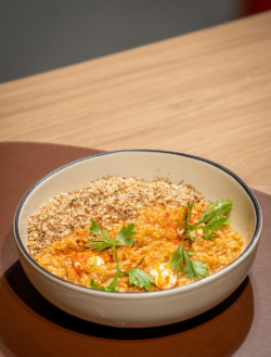 Nos principais, o Arroz de Pernil com Creme de Pimentão e o Baião Vegetariano traduzem um pouco a essência da casa, assim como o Cuscuz Sagratto, com pirão de leite e tagliata de filet mignon ao demi glace.