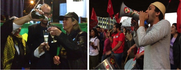 De um lado, os “coxinhas” ostentando signos do bon vivant: taças com champanhe erguidas, pizzas recheadas de coxinhas e memes nas redes sociais com fotos de aperitivos e coquetéis; e do outro, os “mortadelas” com os tradicionais signos da esquerda: bandeiras vermelhas, megafones, faixas e punhos erguidos.