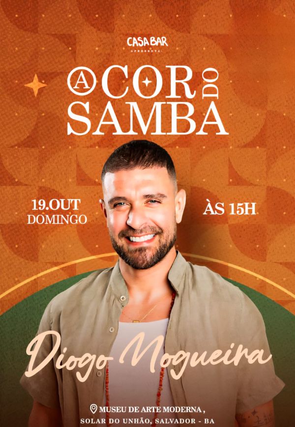 O samba vai colorir Salvador em um cenário deslumbrante à beira da Baía de Todos-os-Santos. No próximo dia 19 de outubro de 2025 (domingo), às 15h, o Museu de Arte Moderna da Bahia (Solar do Unhão) recebe o projeto “A Cor do Samba”, com o cantor Diogo Nogueira, um dos maiores nomes da música brasileira.