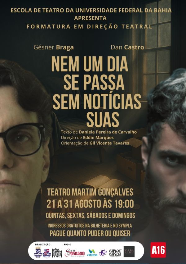 A Escola de Teatro da UFBA apresenta a peça Nem Um Dia Se Passa Sem Notícias Suas.