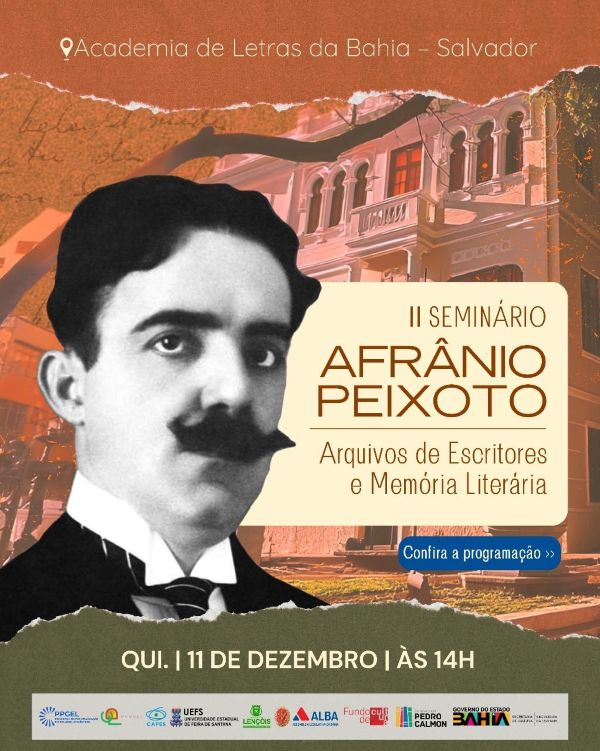 Nesta quinta-feira (11), às 14h, a Academia de Letras da Bahia (ALB) sediará o II Seminário Afrânio Peixoto. O evento presencial também será transmitido ao vivo pelo YouTube da ALB @AcademiadeLetrasdaBahia
