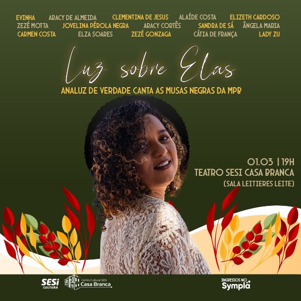 No dia 1º de março, às 19h, o Centro Cultural Sesi Casa Branca abre as portas da Sala Letieres Leite para um espetáculo que é, acima de tudo, um ato de memória e justiça histórica. O show “Luz sobre Elas – Analuz de Verdade canta as Musas Negras da MPB” celebra a trajetória de mulheres que foram alicerces da nossa música, mas que nem sempre tiveram o devido holofote sobre suas histórias.