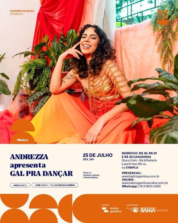 E se os clássicos de Gal Costa ganhassem novas cores, batidas e movimentos? É exatamente essa provocação sonora que a cantora Andrezza leva ao palco do Teatro Gamboa, na sexta-feira (25), às 19h, com o show Gal pra Dançar. O espetáculo é um mergulho irreverente e afetuoso na obra da diva baiana, com releituras cheias de suingue, que misturam arrocha, axé, funk e pagodão baiano. E além de tudo isso as canções autorais trazem o tom de exclusividade ao show. Os ingressos custam R$40 e R$20 e estão à venda no Sympla. Para quem comprar casadinha meia os dois saem por R$30 e casadinha inteira por R$60.