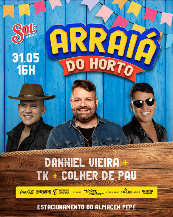 Chegou a hora de esquentar o coração ao som do forró! No sábado, 31 de maio, a partir das 15h, o charmoso bairro do Horto Florestal, em Salvador, recebe mais uma edição do tradicional *Arraiá do Horto*. O evento, promovido pela Oquei Entretenimento, acontece no estacionamento do Almacen Pepe e promete ser um dos mais animados da temporada junina! Os ingressos estão disponíveis para compra na Ticket Maker, com virada de lote programada para amanhã, dia 28/05.