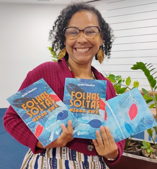 A Biblioteca Central do Estado da Bahia recebe, nesta quinta-feira, 15 de maio, no horário das 18h às 20h, o lançamento do livro Folhas Soltas Nsaba, Ewê, obra de estreia da atriz, poeta e contadora de histórias Jeane Sánchez. Com selo da Editora Cogito, o livro conta com apresentação da poeta Jovina Souza, orelha assinada por Ametista Nunes e capa em monotipia do artista plástico Mauro Lúcio.