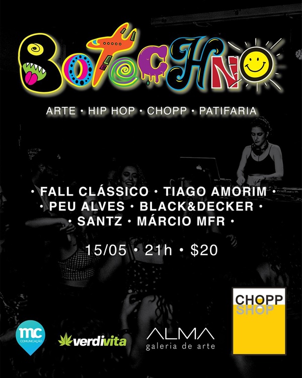 Depois de anos de silêncio e apagamento da originalidade, Salvador volta a pulsar com o que tem de mais autêntico na cena eletrônica alternativa. A The Bosch Crew, coletivo que desde 2001 desafia convenções e dá uma necessária sacudida na caretice cultural da cidade, lança o BOTECHNO: uma nova festa que ocupa a cidade com arte, batida e liberdade. A 1ª edição acontece HOJE, quinta, 15/05, a partir das 20h, no ChoppShop, Rio Vermelho, com ingressos a R$ 20,00 (antecipado). Para saber onde será o próximo encontro e acompanhar os line-ups, siga @theboschcrew nas redes sociais.