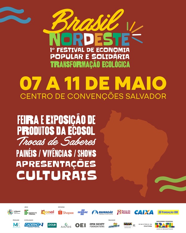 O Brasil Nordeste – 1º Festival de Economia Popular e Solidária é uma iniciativa do Governo do Estado da Bahia, por meio das secretarias do Trabalho, Emprego, Renda e Esporte (Setre), de Desenvolvimento Econômico (SDE), e apoios do Instituto Federal (IF), do Centros Públicos de Economia Solidária da Bahia (CESOL). O evento é produzido pela MK Produções e tem como correalizadores Caderno 2 Produções, Polo Cultural, Associação de Assistência à Produção e ao Desenvolvimento Sustentável (AAPDS), Organização de Estados Ibero-americanos (OEI) e Open Society Foundations (OSF), com Patrocínios de Shopee, Sebrae, Fundação Banco do Brasil, Banco do Nordeste, Caixa, e da Bahiagás, através da Lei Rouanet de Incentivo à Cultura. Realização do Consórcio Nordeste e Ministério da Cultura do Governo Federal.