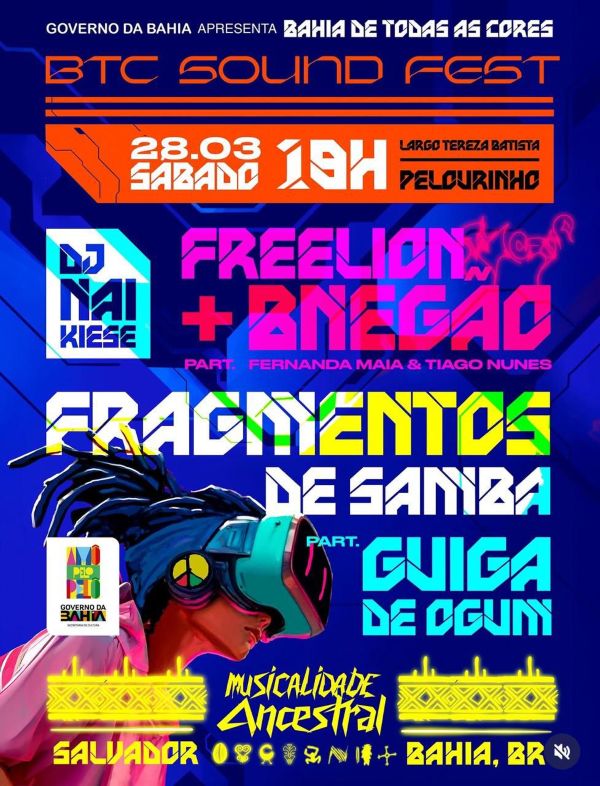 No sábado (28 de março), a programação começa às 9h com a pintura do muro oficial e segue até 17h na Barroquinha, onde também ocorre o 1º Encontro Baiano de Sound System, das 10h às 16h. As mesas de debate acontecem no Museu Eugênio Teixeira Leal (Pelourinho), integrando ações de redução de danos promovidas pela Rede AMO, com foco em saúde, direitos humanos, música e território.