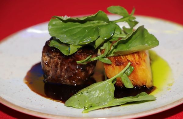 Restaurante Cia do Sertão (localizado em Salvador) Filet Oyster Stout com Mil Folhas de Aipim com molho à base de ostra, manteiga e cerveja RIS Caramelo Salgado