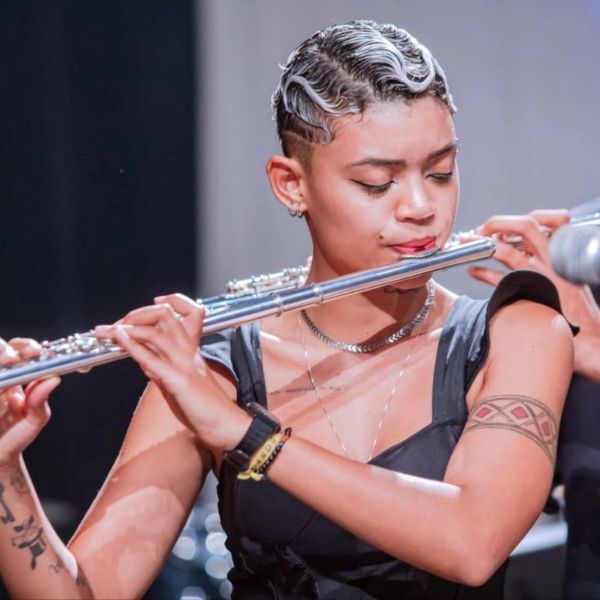 A convidada Camile Bueno é flautista, educadora e pesquisadora, com trajetória ligada à UFBA e participação em projetos como o Regional de Choro Tico Tico no Dendê e a Roda Didática da Escola de Música da UFBA, unindo performance, formação e difusão da música instrumental brasileira.