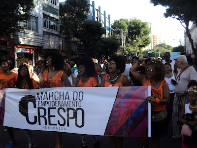 Foi a primeira Marcha do Empoderamento Crespo, ontem, sábado à tarde – do Campo Grande à Praça Castro Alves, pela Avenida Sete, no centro histórico -, um fato marcante na “cidade negra” do Salvador, no mês em que se comemora o Dia da Consciência Negra – 20 de novembro (dia da morte do herói maior Zumbi dos Palmares), data que é feriado, por exemplo, em São Paulo (não é feriado na Bahia).