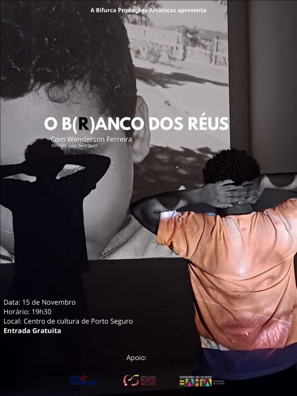 No próximo dia 15 de novembro o Centro de Cultura de Porto Seguro recebe a estreia oficial do espetáculo O B(r)anco dos Réus, uma montagem corajosa que atravessa o Brasil — do Rio de Janeiro a Caraíva —, para reconstituir a perícia de f(atos) que cotidianamente conduzem ao apagamento simbólico e concreto de vidas pretas.