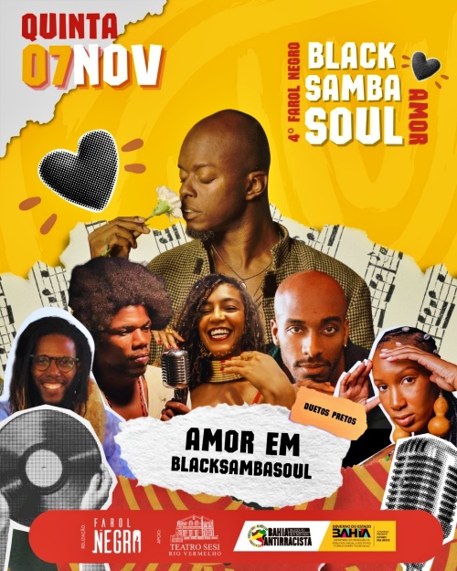 No dia 7 de novembro, às 21h, na Varanda do Sesi Rio Vermelho, embarque na celebração do amor ao som de uma fusão entre Black Music e Samba, homenageando ícones do Brasil e do continente africano como Emílio Santiago, Tim Maia, Clementina da Silva, Mamady Keita e Salif Keita.