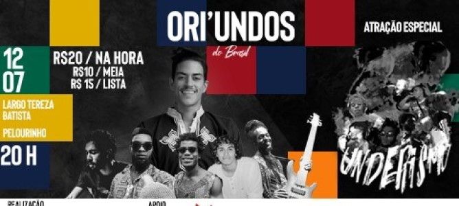 No dia 12 de julho Orí e a banda Ori’undos fará show na Praça Tereza Batista, no Pelourinho, às 20h. Além de cantor e contra-baixista, Orí já tem uma longa trajetória musical, fez parte por 10 anos de uma banda de reggae que participou do maior festival de música e cultura da América Latina, o Femadum, por algumas vezes realizando a abertura da banda Olodum.