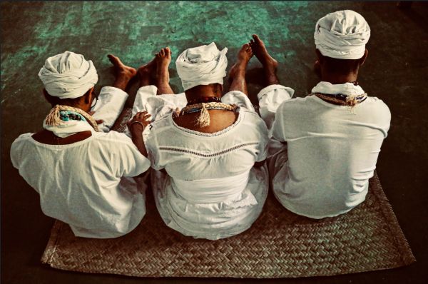Os corpos assentados entre quartinhas e velas, os gestos suspensos em transe, os olhares recolhidos e as folhas frescas revelam a filosofia de um povo que mantém viva a ligação entre passado, presente e futuro. Há, em cada fotografia, um tempo ancestral que retorna. Um tempo Sankofa, em que os mortos nunca morrem e os Òrìsà jamais deixam de pisar esta terra que é, ao mesmo tempo, Aiyé e Òrun.