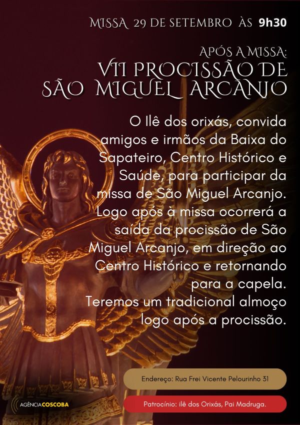 No próximo domingo, 29 de setembro, a comunidade da Baixa do Sapateiro, Centro Histórico e Saúde se reunirá para celebrar o Dia de São Miguel Arcanjo com uma programação especial que une espiritualidade, cultura e confraternização. A missa será realizada às 9h30, na Capela localizada na Rua Frei Vicente, nº 31, no Pelourinho.
