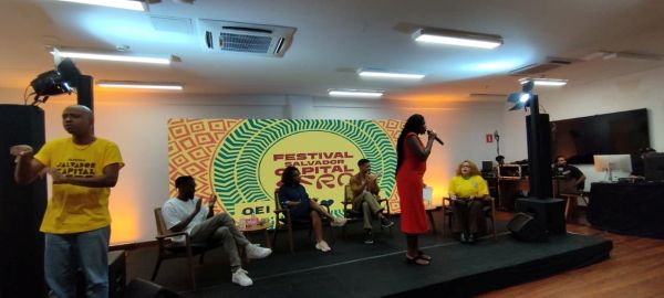 Nesta sexta-feira (22), as atividades do Festival Salvador Capital Afro começaram às 10h com o painel “Vozes Negras”, no Auditório Makota Valdina, sob a curadoria da Lista Preta. Participaram Nati Junqueira, Math Power e Anderson Simplício, com mediação de Alexandre Santana, discutindo a comunicação digital como ferramenta de fortalecimento das periferias.