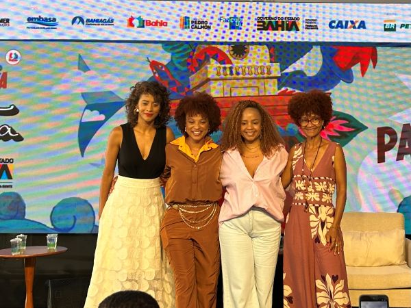 Na tarde do sábado (25), a Tenda Paraguaçu foi palco da mesa “Nossas vozes como a noite estrelada”, e reuniu jornalista e apresentadora, Aline Midlej; a psicopedagoga, fisioterapeuta e terapeuta holística, Sueli Kintê; a escritora, jornalista e sacerdotisa, Yèyè Kintê, também conhecida como Yèyè Osunsade; e contou com a mediação da jornalista, escritora e pesquisadora, Luana Souza. A mesa circulou entre literatura, vozes e a ancestralidade das gerações.