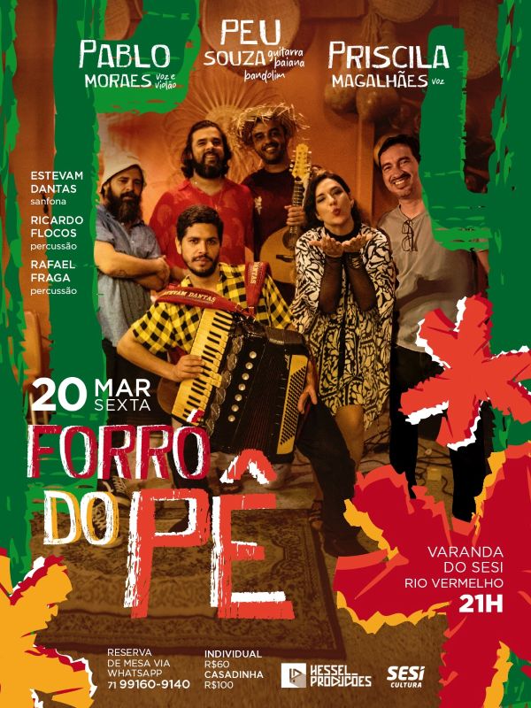 O autêntico forró nordestino toma conta da Varanda do Teatro SESI Rio Vermelho, no bairro do Rio Vermelho, na sexta-feira, 20 de março, às 21h, com o show do Forró do Pê. O trio leva ao público um repertório inspirado nos grandes mestres do gênero, celebrando a tradição, a dança e a energia da música nordestina.