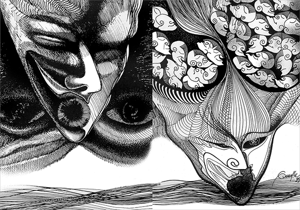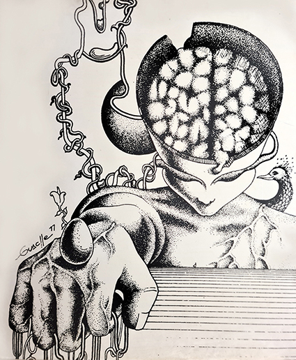 Reconhecido por sua expressividade marcante e intensa pesquisa visual, Guache Marques tem uma trajetória que atravessa diversas linguagens e suportes artísticos desde os desenhos a pastel e nanquim do início de carreira na EBA/UFBA até as xilogravuras e litogravuras nas oficinas do MAM, pinturas e gravuras digitais atuais, alinhando-se assim às novas possibilidades técnicas da contemporaneidade.