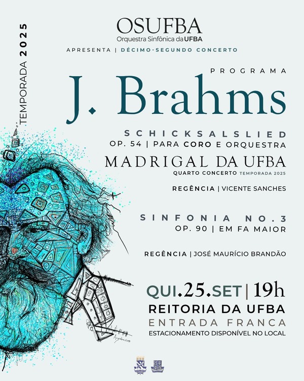 A Orquestra Sinfônica da Universidade Federal da Bahia (OSUFBA) realiza, na quinta-feira (25), na Reitoria da UFBA, o seu décimo segundo concerto da temporada 2025. Para esta apresentação, a mais antiga orquestra em atividade contínua no estado, recebe o Madrigal da UFBA, em uma sessão gratuita e com livre acesso à população.
