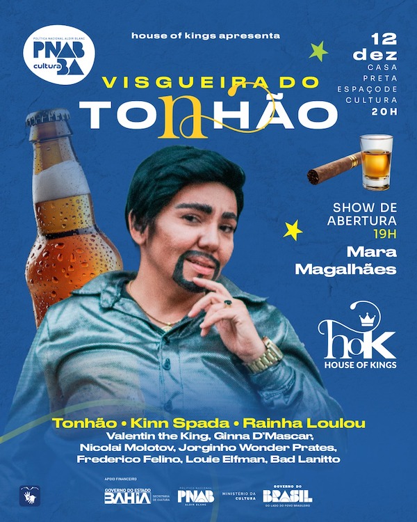 A Casa Preta  Espaço de Cultura (Rua Areal de Cima, 07, Dois de Julho) recebe a Visgueira do Tonhão, no dia 12 de dezembro de 2025 (sexta), a partir das 19h. O show, realizado pelo coletivo drag king House of Kings, traz o romantismo e a boemia para a cena, com Tonhão, Kinn Spada, Rainha Loulou, Valentin the King, Ginna D’Mascar, Nicolai Molotov, Jorginho Wonder Prates, Frederico Felino, Louie Elfman e Bad Lanitto. O show de abertura fica por conta da cantora de arrocha Mara Magalhães. Os ingressos custam R$ 20,00 e R$ 10,00 (meia-entrada).