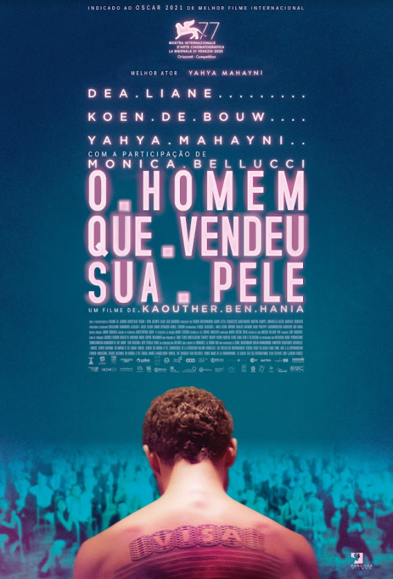 O HOMEM QUE VENDEU SUA PELE, de Kaouther Ben Hania, estreia nesta quinta-feira, dia no dia 7 de outubro, nas cidades de São Paulo, Rio de Janeiro, Porto Alegre, Florianópolis, Belo Horizonte, Brasília, Salvador, Vitória, São Luis, Palmas, Aracaju e Niterói. Longa chega aos cinemas com distribuição da Pandora Filmes Sobre o filme Indicado ao Oscar 2021 de Melhor Filme Internacional, O HOMEM QUE VENDEU SUA PELE (The Man Who Sold his Skin) de Kaouther Ben Hania estreia em circuito comercial no Brasil com distribuição da Pandora Filmes. O longa estrelado por Yahya Mahayni, Monica Bellucci, Dea Liane e Koen de Bouw, teve uma ótima recepção no Festival de Veneza em 2020, onde foi exibido na Seleção Oficial e Yahya Mahayni saiu premiado como Melhor Ator.