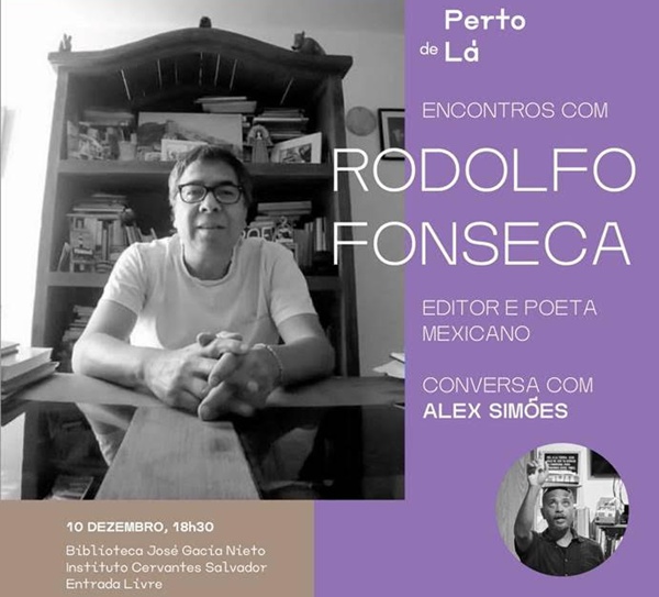 O Instituto Cervantes de Salvador recebe nesta terça-feira (10), às 18h30, o editor e poeta mexicano Rodolfo Fonseca para um encontro com o público. O evento contará com a participação do poeta e tradutor Alex Simões, que conversará com o autor mexicano sobre sua trajetória na literatura e as obras publicadas. O evento integra o projeto ‘Encontros com…’ e acontece na Biblioteca José García Nieto, na sede do instituto. A entrada é gratuita e sujeita à lotação do espaço.