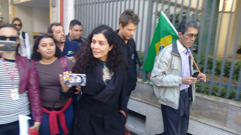 Vamos ver quanto durará o sorriso indecente de um homem que olha para a câmara e chama Letícia de puta. Este já foi descoberto: Gustavo Abagge. Em sua página no Facebook ele postou uma foto do incidente. A legenda: “Letícia Sabatella quase foi linchada”. Abaixo, a foto: