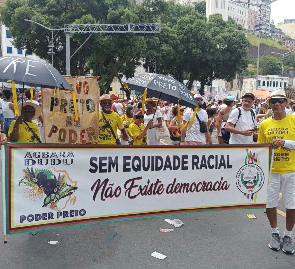 O Coletivo Agbara Dudu marcou presença mais uma vez no cortejo da Lavagem do Bonfim, nessa quinta-feira (15) em Salvador, reunindo militantes e apoiadores. Em Yorubá, Agbara Dudu significa “força negra”.