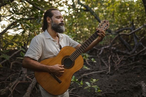 “O álbum faz um resgate dos elementos rítmicos da cultura afro-brasileira, extremamente presente na Bahia. Nesse processo, resgato minha própria essência, minha identidade e minha natureza enquanto músico brasileiro e baiano”, resume Isaac Moreira. “As letras e sonoridades trazem reflexões sobre a nossa própria existência, os nossos conflitos internos, o desconhecido, a superficialidade do mundo moderno e a nossa volta à origem – ao aconchego. Na elaboração dos arranjos, experimentei os ritmos e sonoridades ancestrais por meio do violão clássico, em diálogo com instrumentos de percussão e a flauta. Cada faixa cria uma paisagem musical única, usando minha liberdade criativa e meu desejo de reconexão com aquilo que é essencial”, descreve o artista.