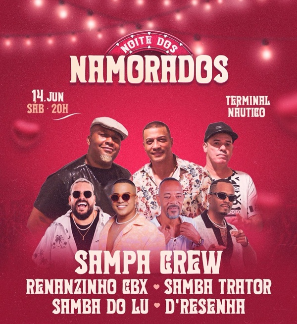 O clima de romance vai tomar conta de Salvador no dia 14 de junho (sábado), a partir das 20h, com a Noite dos Namorados, que acontece no charmoso Terminal Náutico. O evento já está no 2º lote de ingressos e vem sendo um verdadeiro sucesso de vendas, prometendo uma noite especial para casais e solteiros que amam curtir boa música e viver novas histórias.