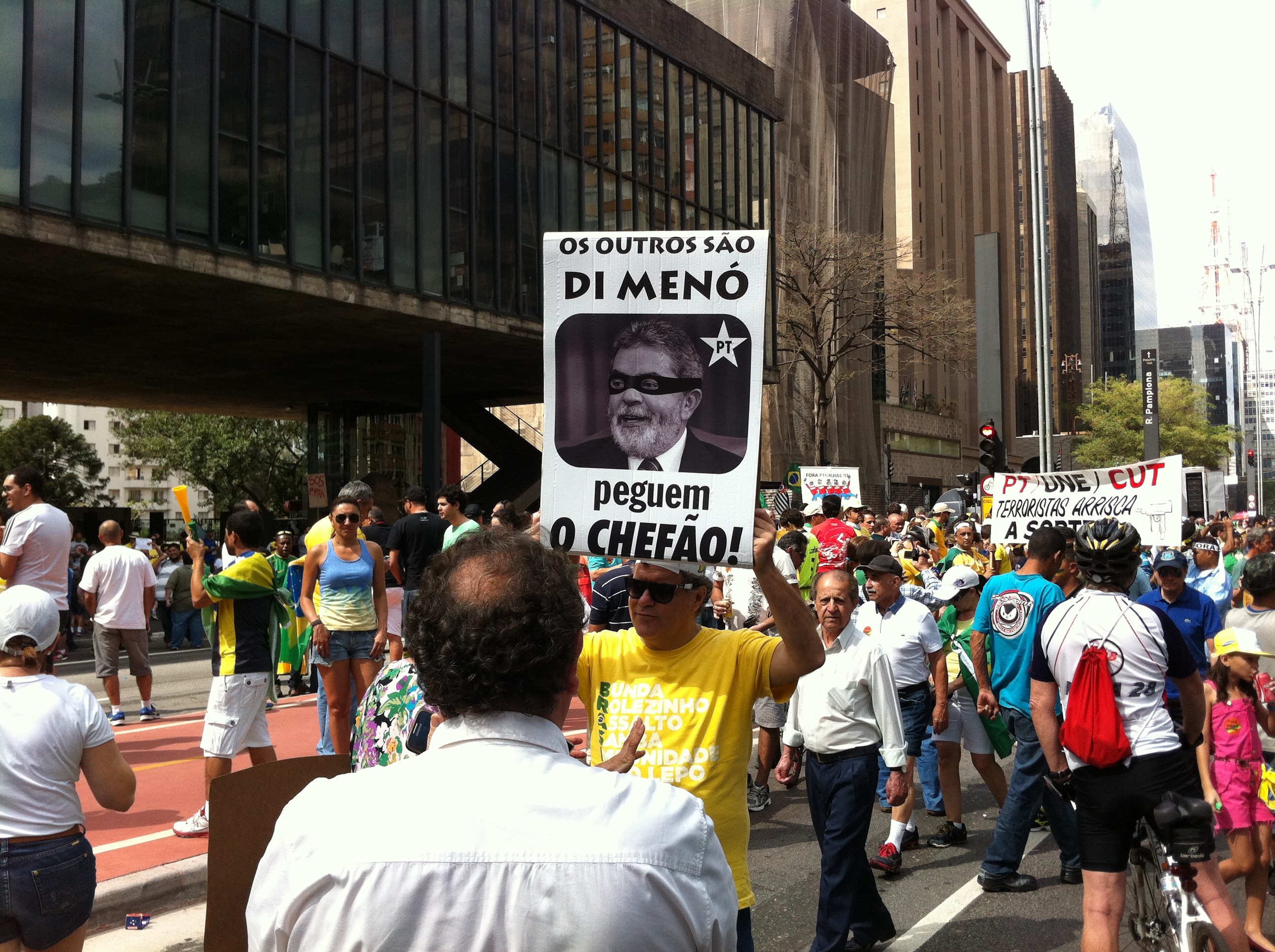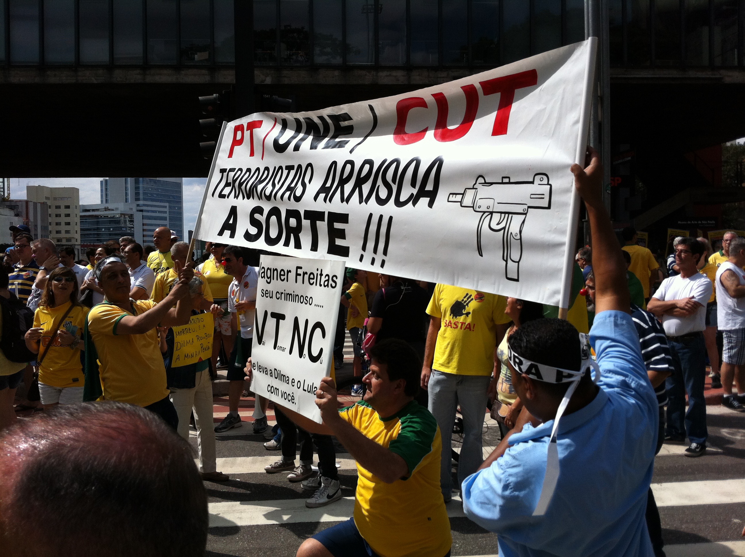 Uma meia dúzia de jovens, por exemplo, carregava um estandarte com os dizeres: “Dilma, decida: Jânio ou Getúlio” (a pontuação é por minha conta; no original é dilma decima jânio ou getúlio). Gritavam palavrões enquanto marchavam.