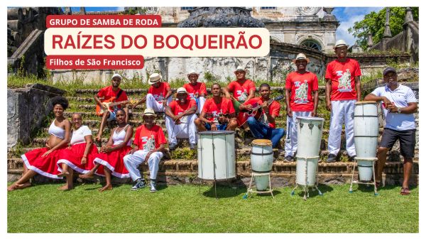 Fundado em 2014 e com registro na Casa do Samba de Santo Amaro, “Raízes do Boqueirão” é composto por 14 pessoas que paralelo ao trabalho musical exercem atividades como pescadores/as, marisqueiras e nas áreas de apicultura, agricultura familiar, extrativismo e produção de artesanatos. O local familiar e de trabalho dessas/es artistas é um território quilombola chamado de São Francisco do Paraguaçu, que fica localizado às margens do lagamar do Iguape, onde o Rio Paraguaçu se encontra com a Baía de Todos os Santos.