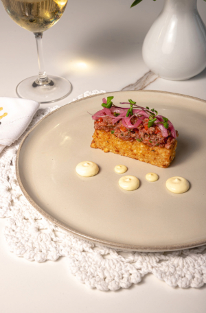 No Menu Almoço, servido todos os dias, das 12h às 15h, no Salão Interno (piso Piscina Redonda), o destaque vai para opções como o Stick de Tapioca com Provolone sob tartar de filé mignon entre as entradas, o Rizoni de Camarão com aioli e telha de parmesão como principal, e o Pudim de Leite cremoso com manga e suspiros como uma das sobremesas.