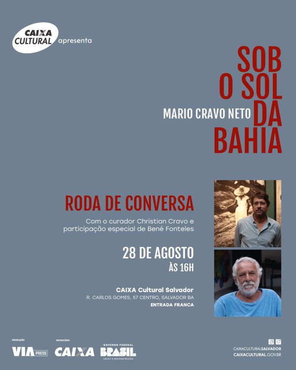 Realizadas pela Via Press, a roda de conversa, a exposição e as demais ações em torno dela têm patrocínio da CAIXA e do Governo Federal, e apoio institucional do Instituto Mario Cravo Neto.