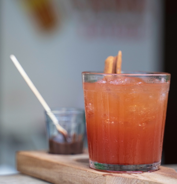 ·         Café e Cana Botequim – Drink “O Rojão!”: licor de jenipapo, canela, cardamomo, cachaça bálsamo, angostura e limão siciliano