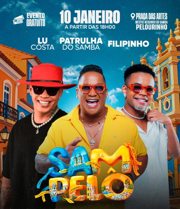 O coração do Centro Histórico de Salvador vai pulsar no ritmo do samba no próximo dia 10 de janeiro, a partir das 18h, com a realização do Sampelô, evento gratuito que promete reunir música, tradição e alegria na Praça das Artes – Mestre Neguinho do Samba, no Pelourinho.