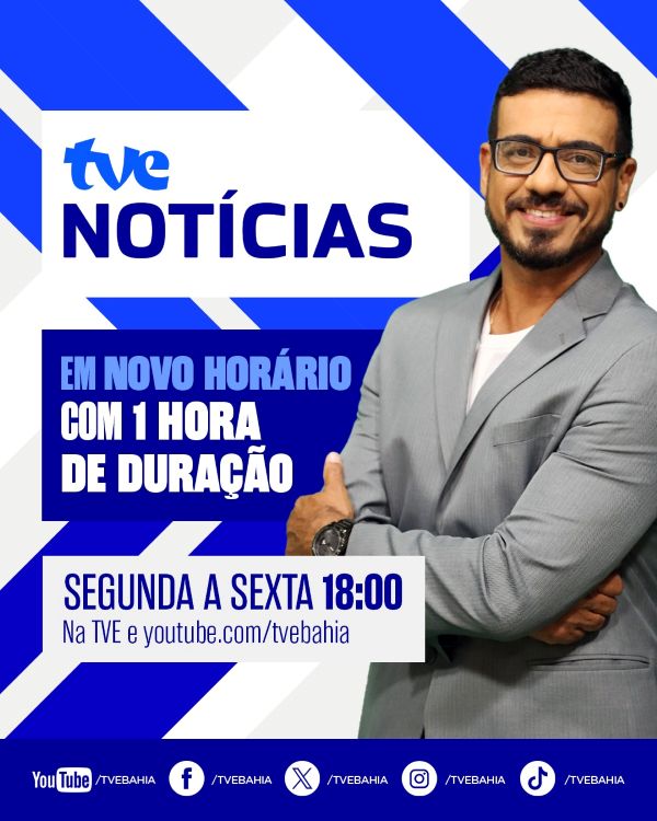 A partir desta segunda-feira, 4 de agosto, o TVE Notícias ganha mais tempo no ar e passa a ter uma hora de duração, com exibição das 18h às 19h. Em novo formato, o telejornal apresenta a cobertura dos principais acontecimentos da Bahia, do Brasil e do mundo, ampliando a prestação de serviço à população baiana e reforçando o compromisso da emissora com a sociedade, oferecendo mais informações.
