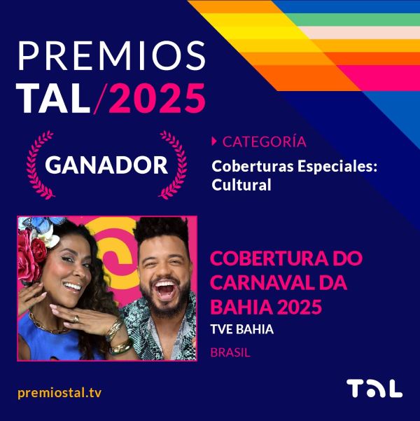 A TVE venceu a 13ª edição do Prêmio Televisión América Latina, na categoria Coberturas Especiais/Cultural. A conquista marca o segundo ano consecutivo da emissora como vencedora na categoria, desta vez com a Cobertura do Carnaval da Bahia 2025. A emissora realizou a maior transmissão da festa, destacando a diversidade cultural do Carnaval e valorizando os blocos afro, afoxés, de samba e reggae sendo a única a transmitir ao vivo os três principais circuitos: Campo Grande, Barra e Pelourinho. A edição 2025 do Prêmio recebeu 531 inscrições de 62 canais em 16 países.