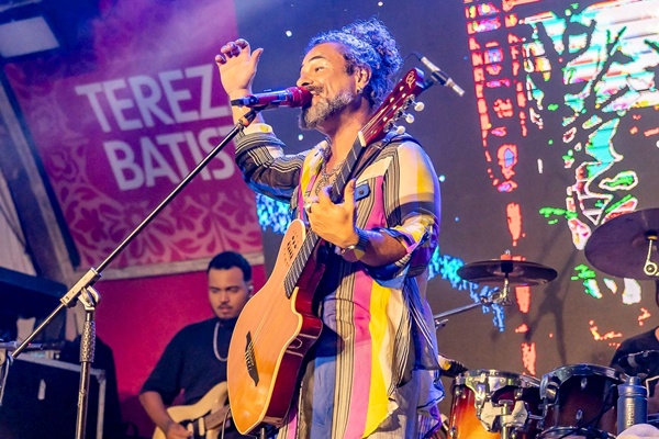 No Largo Tereza Batista, Viny Brasil apresentou o clipe ‘Jorge Protetor’, uma produção em 2D que une poesia, fé e ancestralidade em uma narrativa visual poderosa. O show, que contou com projeções audiovisuais e a participação especial da cantora Larissa Marques, transformou o espaço em uma experiência imersiva, envolvendo adultos e crianças em atividades lúdicas e educativas. A iniciativa incluiu cadernos para colorir com ilustrações inspiradas no clipe, uma forma de estimular a criatividade das crianças e fortalecer seu vínculo com a cultura negra desde cedo.